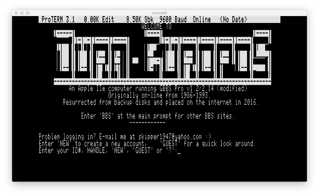 A little while back we implemented a “virtual modem” that allows users to telnet to a large directory of Internet-connected BBSes from inside Apple II terminal programs. However, we didn’t emulate enough of the Apple Super Serial card for the only Apple II terminal program to support ANSI, ProTerm 3.1, to work properly.