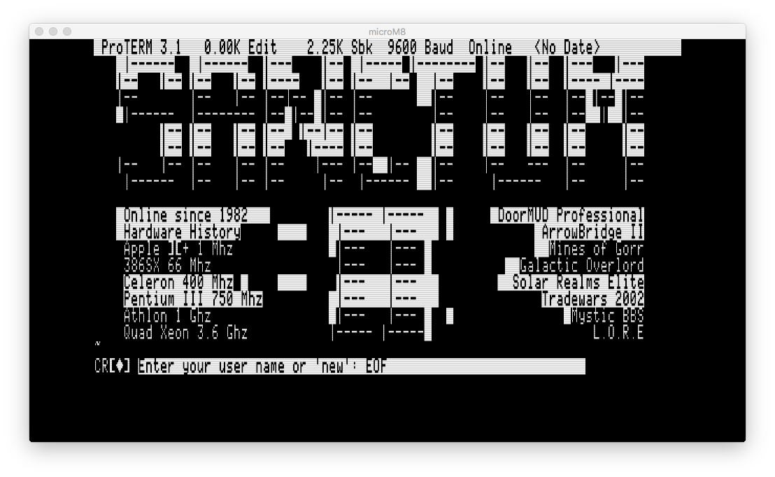 That’s now changed. While Apple IIs don’t support colour text (or most IBM graphics characters), cursor positioning and other vital ANSI capabilities are now available via ProTerm 3.1. You can access an appropriately configured ProTerm directly from the microM8 main or hamburger menus, and visit BBSes the way you would have on a real Apple II!