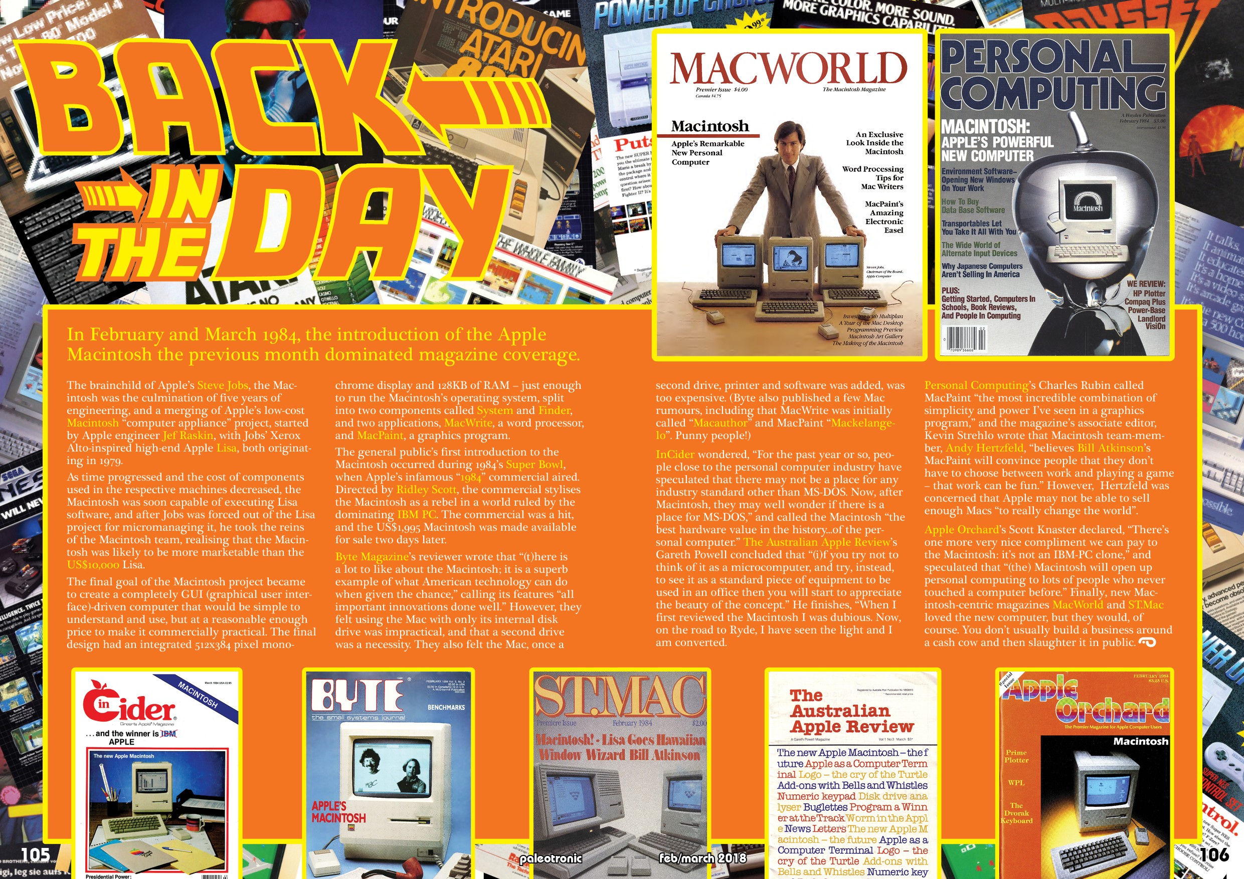 Apple Orchard’s Scott Knaster declared, “There’s one more very nice compliment we can pay to the Macintosh: it’s not an IBM-PC clone,” and speculated that “(the) Macintosh will open up personal computing to lots of people who never touched a computer before.” Finally, new Macintosh-centric magazines MacWorld and ST.Mac loved the new computer, but they would, of course. You don’t usually build a business around a cash cow and then slaughter it in public.