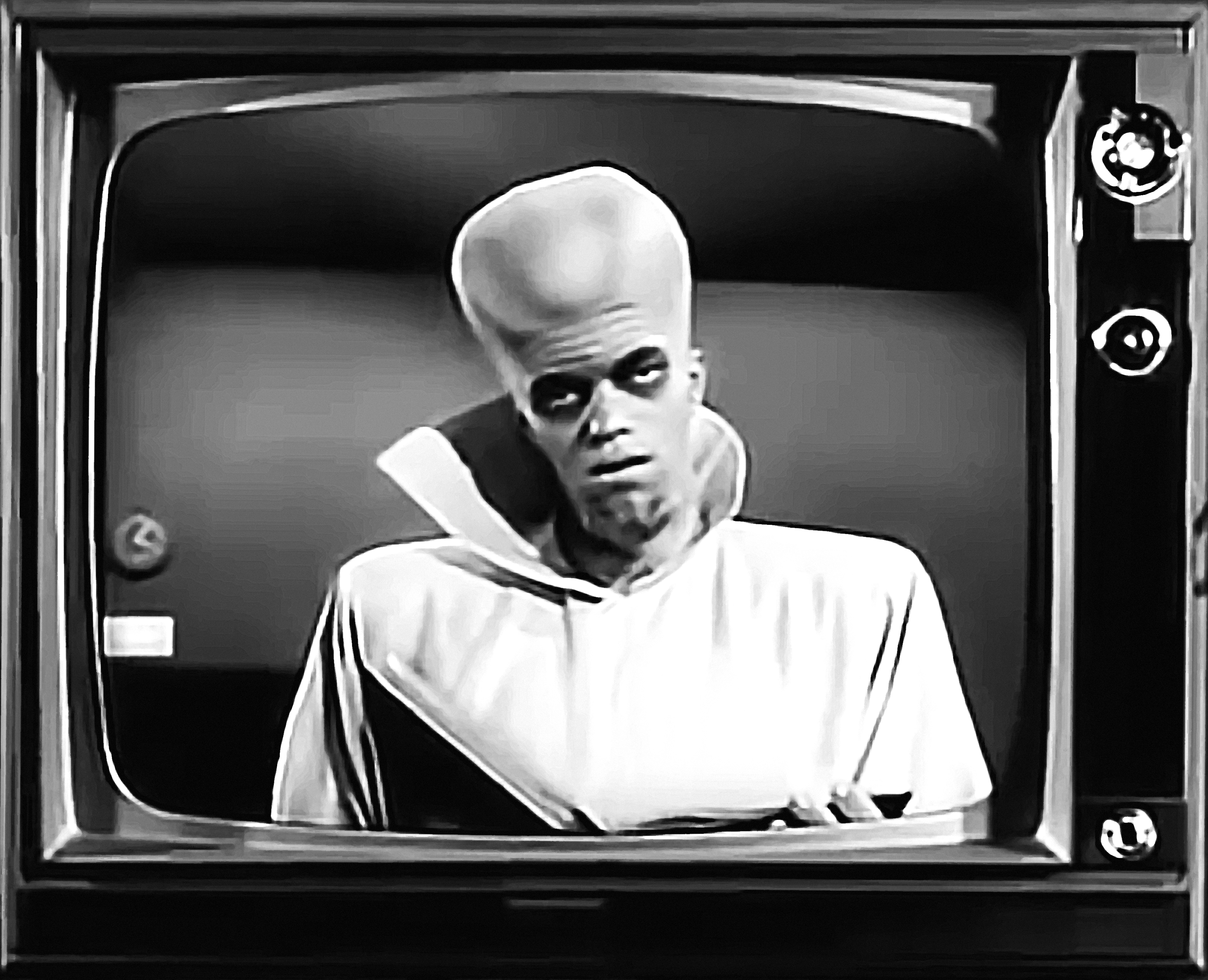 Head writer Rod Serling also hosted The Twilight Zone, with his trademark cool and dispassionate style often in sharp contrast to the strong moral and emotional messages embedded in his own screenplays. The anthology series launched the careers of a number of actors, including Star Trek’s William Shatner. Serling believed science-fiction would allow him to explore more controversial social concepts without interference from the networks. A famous example is the episode “To Serve Man”, where an alien attempts to sell humanity on the benefits of “co-operation”, when the true intent is much more sinister –a not-so-subtle commentary on imperialism.