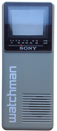 First introduced in 1982, the original Sony Watchman used a curved screen “scanned” by an electron gun mounted beneath it, allowing for a portable radio-style form-factor containing all the parts needed for a miniature black-and-white television.