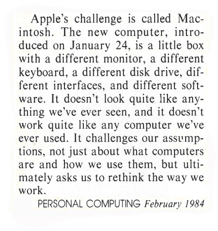 The suggestion is that the Macintosh will end that domination. However, history will prove that prediction wrong, with the PC and its descendants going on to rule the personal computer industry well into the present day.