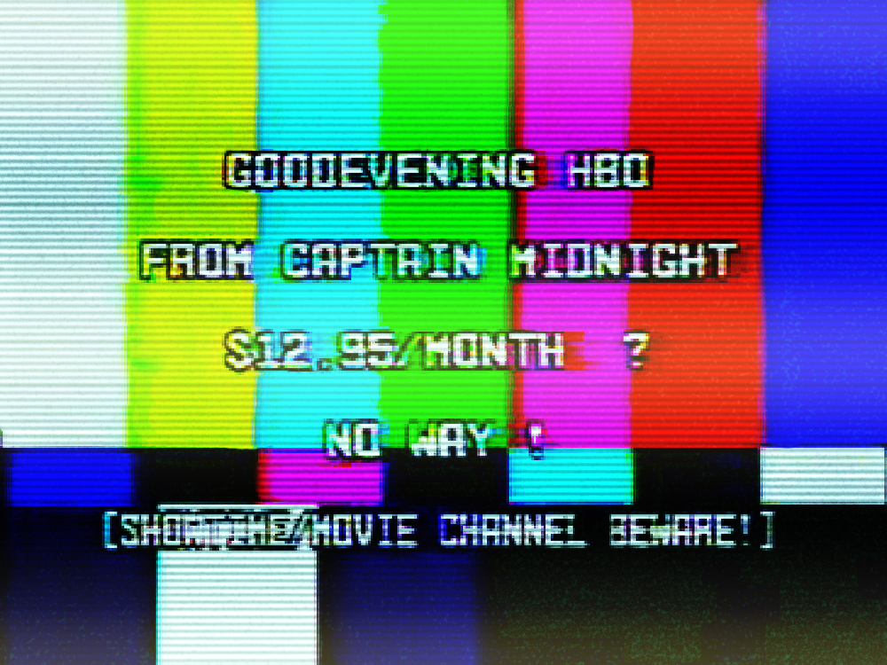 Not surprisingly, most people opted out of the service, unable to stomach the extra cost, but the channels’ lineups were prominently listed on computer-generated TV schedule channels, and grated on viewers only able to watch commercial-filled programming.