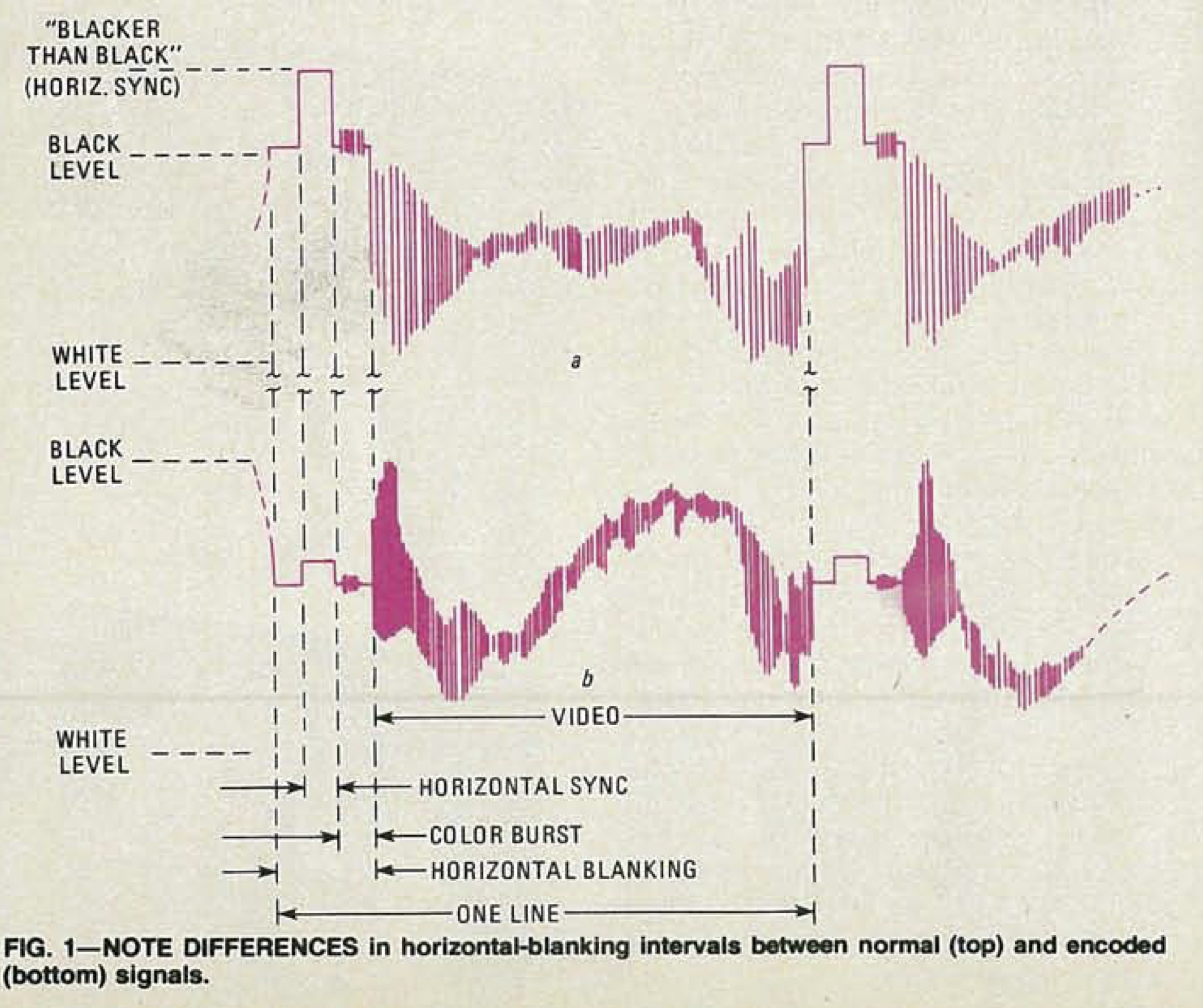 A pay-TV decoder box converted the modified signal back into the original by reversing what the encoder had done, restoring the sync pulses and making the rest of the signal legible to the television’s video circuitry once more. On systems where the blanking pulses were hidden, it was a simple matter of knowing where to look. But what if they were removed entirely?