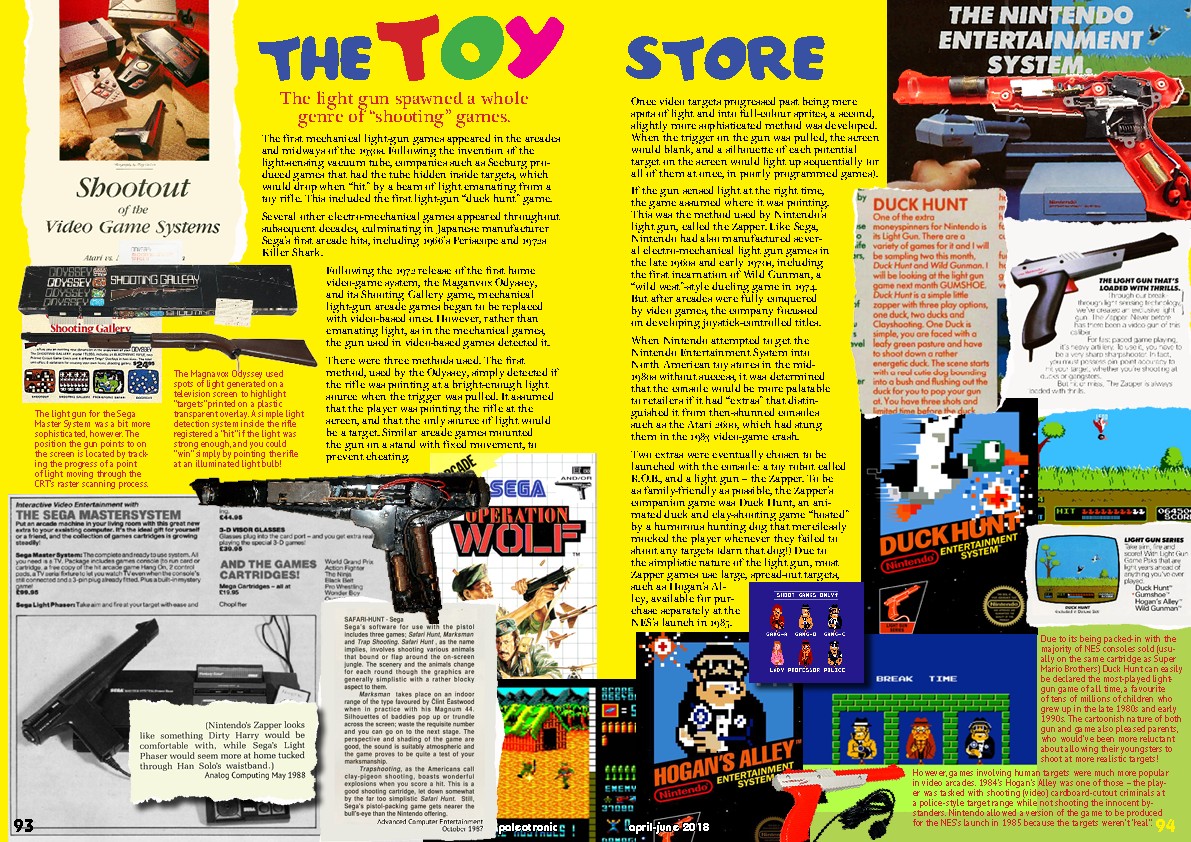If the gun sensed light at the right time, the game assumed where it was pointing. This was the method used by Nintendo’s light gun, called the Zapper. Like Sega, Nintendo had also manufactured several electro-mechanical light gun games in the late 1960s and early 1970s, including the first incarnation of Wild Gunman, a “wild west”-style dueling game in 1974. But after arcades were fully conquered by video games, the company focussed on developing joystick-controlled titles.