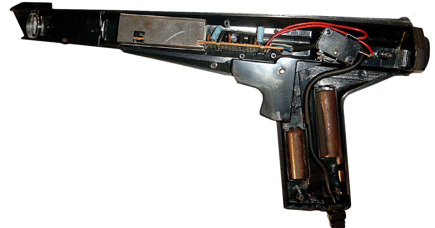 Following the 1972 release of the first home video-game system, the Maganvox Odyssey, and its Shooting Gallery game, mechanical light-gun arcade games began to be replaced with video-based ones. However, rather than emanating light, as in the mechanical games, the gun used in video-based games detected it.