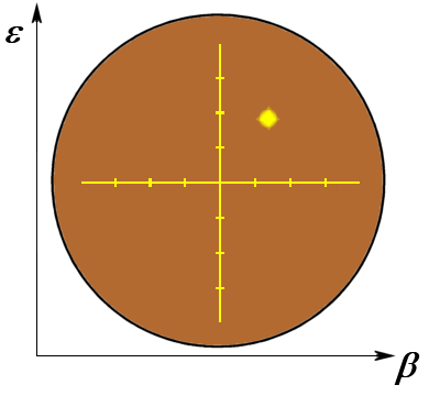 These were known as “A-scope” displays. B-scopes provided top-down representations of the signals provided by airborne radars, which swept from side to side. These showed a “slice” of airspace usually following the plane’s heading. The C-scope provided a “bullseye” view of direction and elevation. The blip showed the location of the target relative to the aircraft (or gun) the radar was att ached to. This is a common indicator used for targeting in air battle-style video games, and it often flashes when the target is in the “crosshairs”.