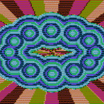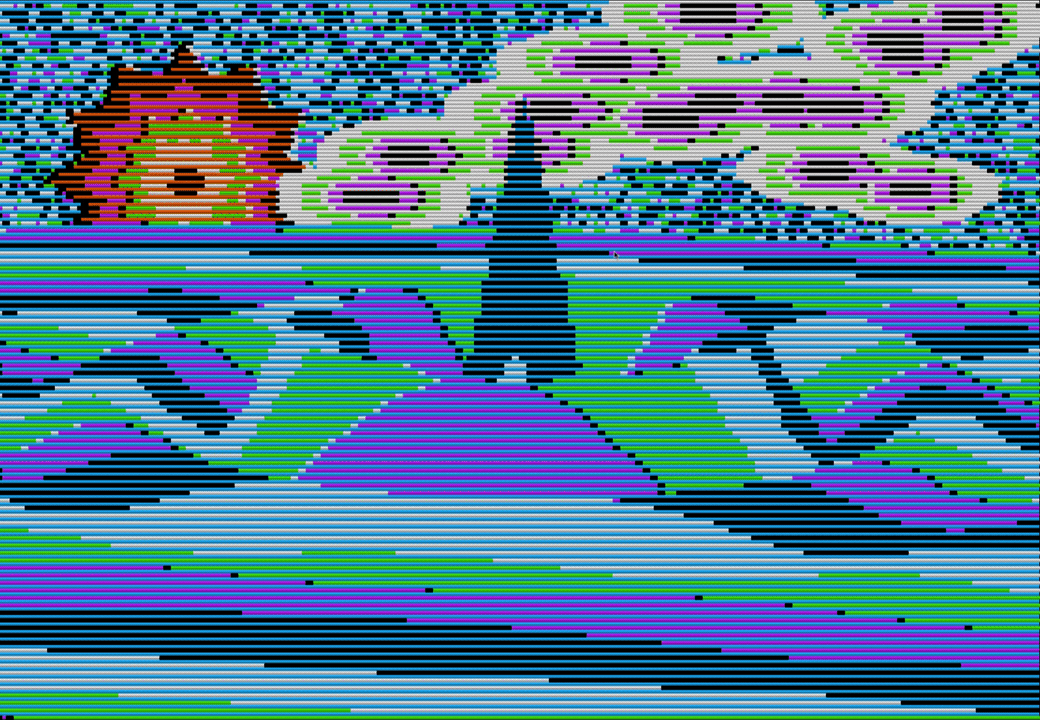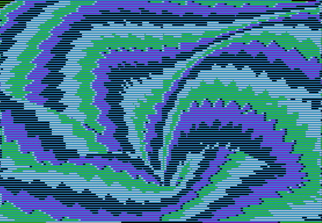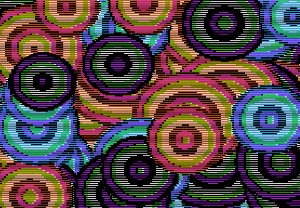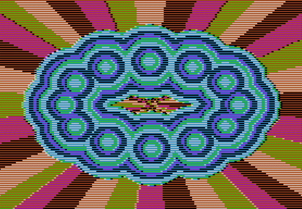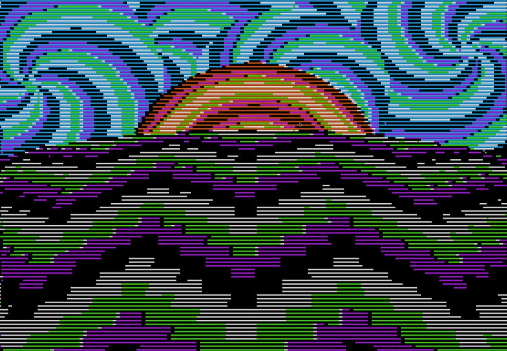 Hidden on the back side of the Print Shop Color Apple II disk is a series of dynamic artworks by Print Shop developer Martin Kahn. They are quite something, considering the extremely primitive nature of the Apple II’s high-resolution graphics mode. (Note: Slideshow may take a few moments to load… it’s around 11MB in total)